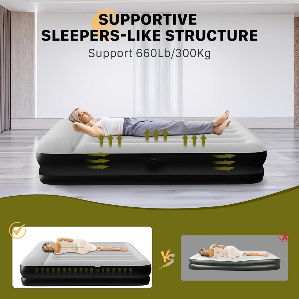 16Inches Queen Size Premium Air Mattress With For Home Camping Guest-Room Inflatable Airbed Blow Up Mattress